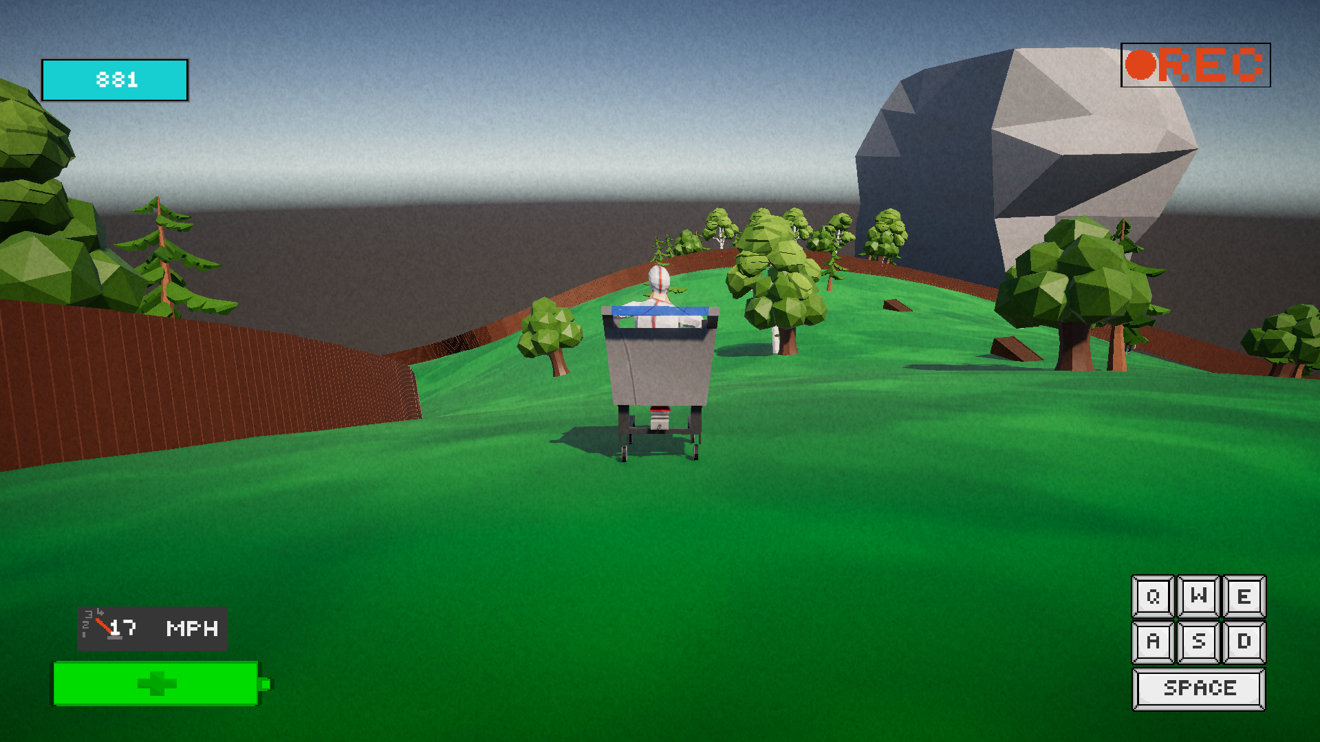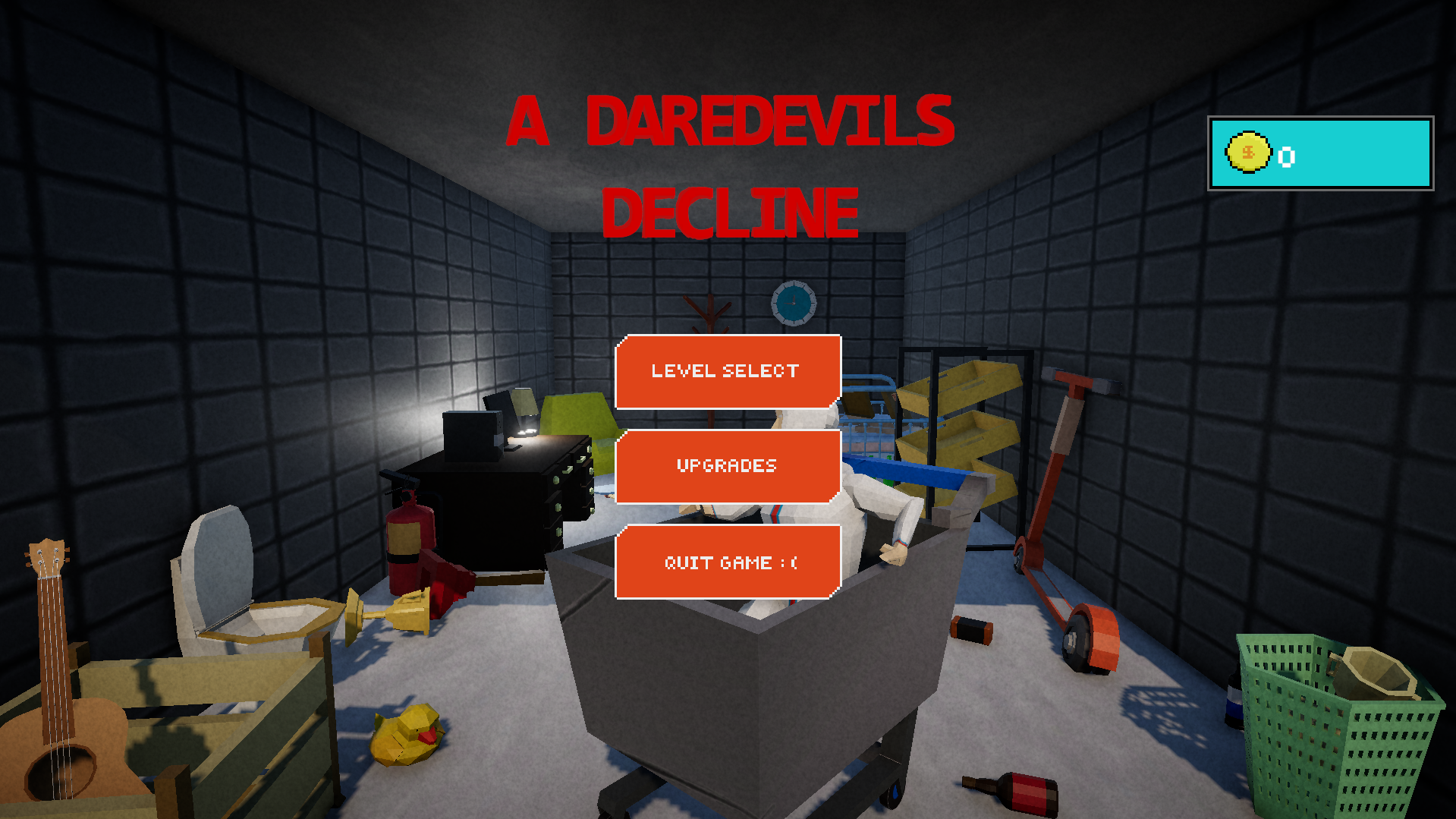 You play as a ex daredevil trying to reclaim his fame by hurling himself downhill in a modified shopping trolley. Earn money and to spend on upgrades to improve your trolley and potential mayhem.